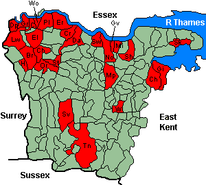 | Chislehurst | St Mary, Hawkwood Lane. Church built 1854. Original registers from 1855. No information on registers.Memorial Inscriptions. Transcript published by NWKFHS (Microfiche Ref. F26). |